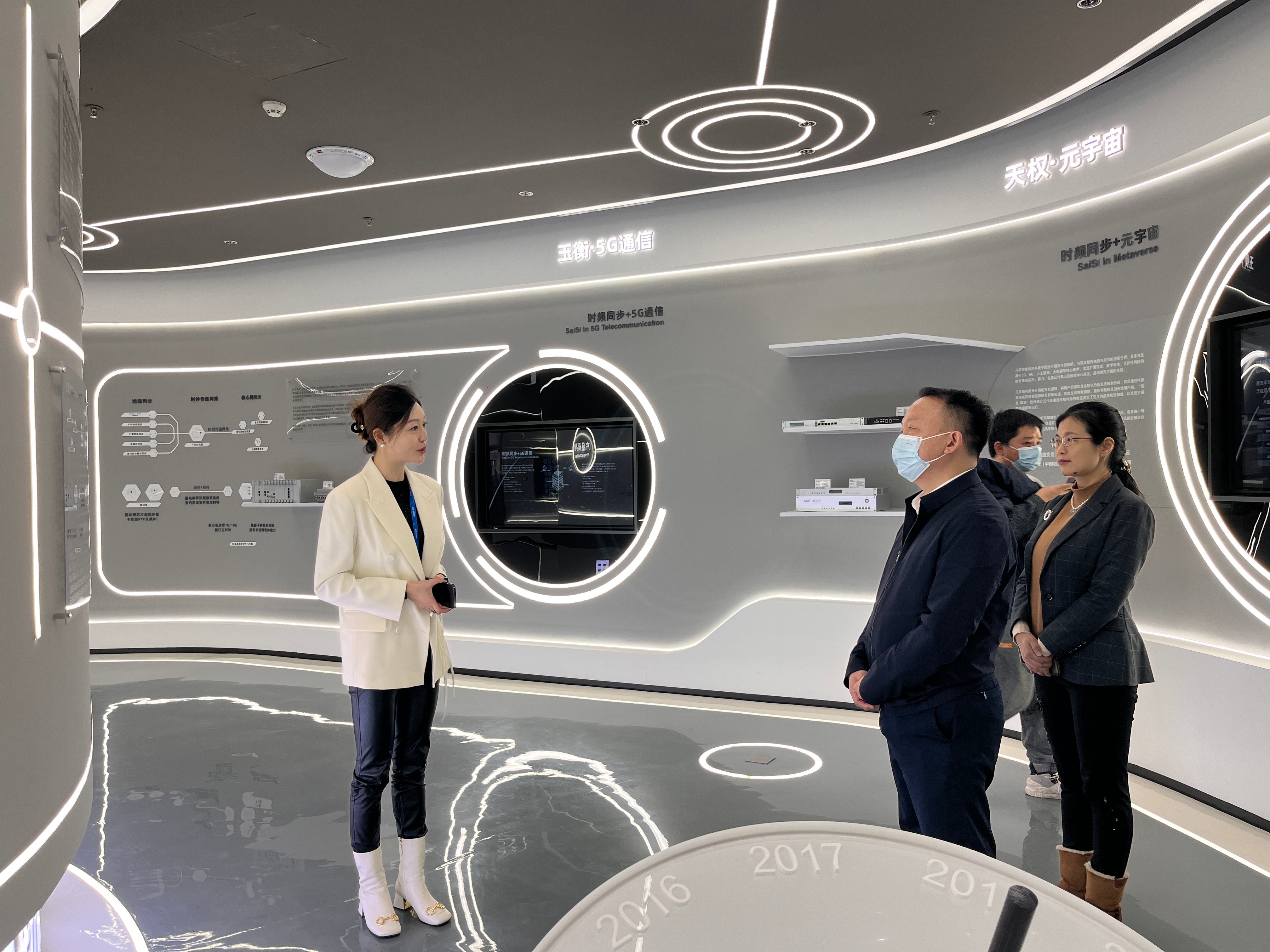 廖区长等一行领导参观了赛思时频科技展厅,细致地了解了时间频率产品及其社会应用情况。廖区长对赛思深耕科技创新、不断延伸时频应用等工作给予了充分肯定,高度认可了赛思时频产品在应用上的布局与前瞻性。